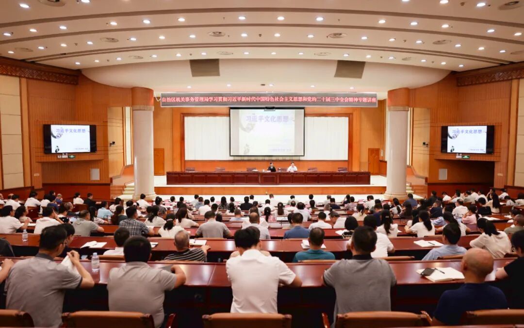 9月16日,自治区机关事务管理局举办学习贯彻习近平新时代中国特色社会主义思想和党的二十届三中全会精神专题讲座,邀请中共广西区委党校文史教研部教授侯琳作专题授课。自治区机关事务管理局在家的党组成员参加讲座。
