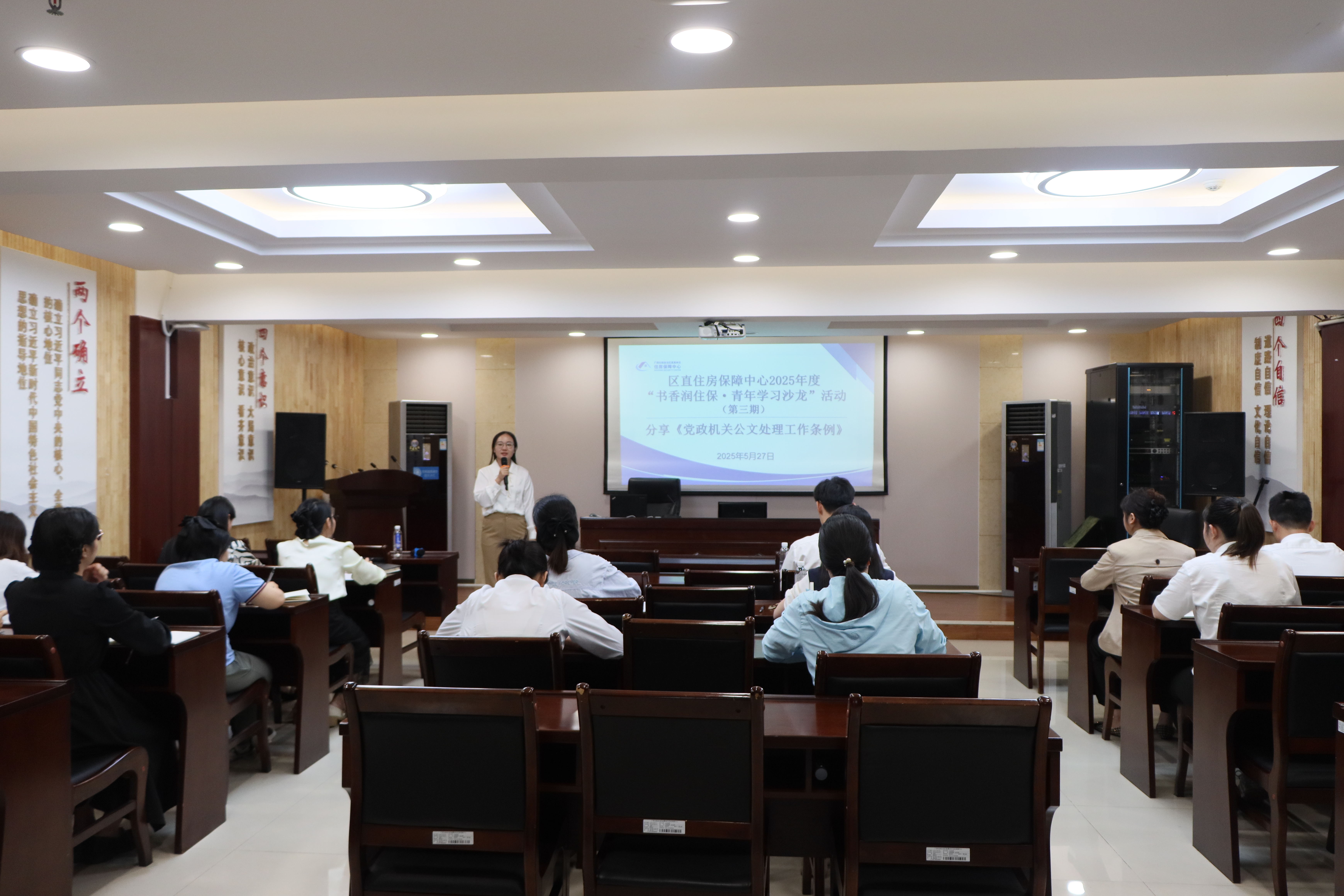2025年,中心围绕青年成长与业务发展需要,组织开展了六期主题鲜明的“书香润住保·青年学习沙龙”学习分享活动,内容涵盖政治理论、业务技能、写作能力等方面。14名青年职工走上讲台,结合理论学习与业务实践,分享所学所悟。他们通过备课与讲授,将碎片化经验转化为结构化知识,在传递中巩固专业能力,在交流中激发创新思路。