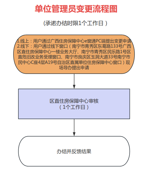 线上:登录广西区直住房保障中心e窗通(PC端)进行单位管理员的变更申请工作。