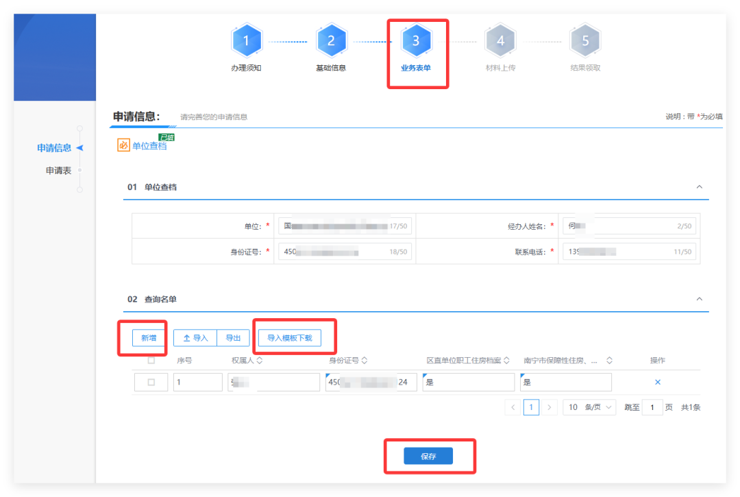 填写完成表单后,可点击“保存”按钮,即可生成填充好数据的申请表,点击“生成申请表”按钮,下载后盖好单位公章上传。