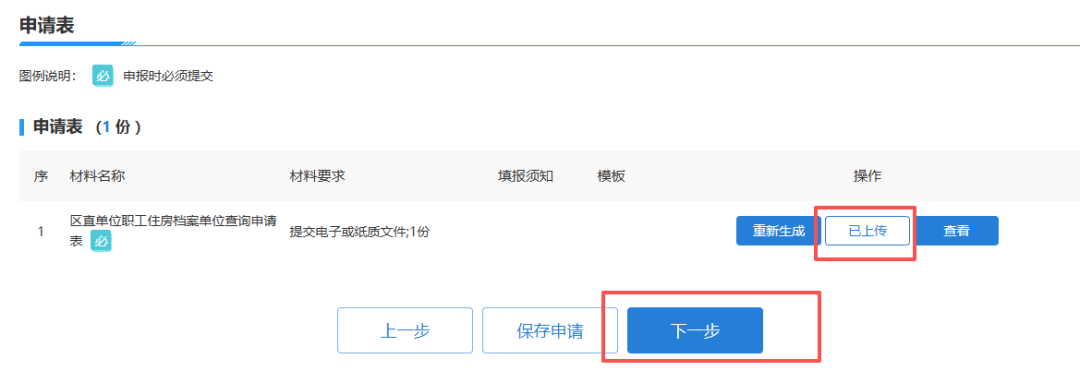 填写完成信息后,确认无误后,点击“下一步”进行材料的上传。