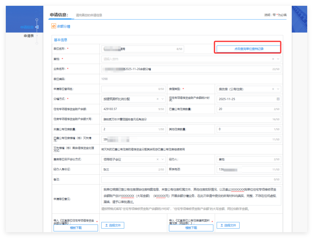 申请单位首先需完成余额分幢查档业务,拿到拷贝档案光盘后再按以下步骤填写: