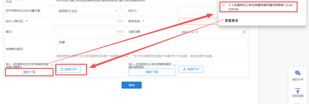 填写完表单信息并上传分幢表、明细表后,点击“保存”按钮,保存表单数据。