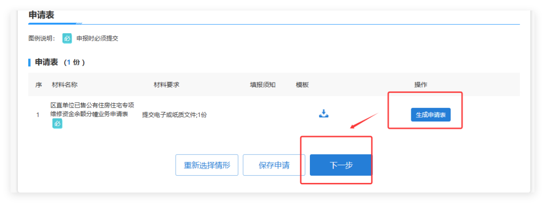 (2)保存后在“申请表”栏目中点击“生成申请表”按钮。