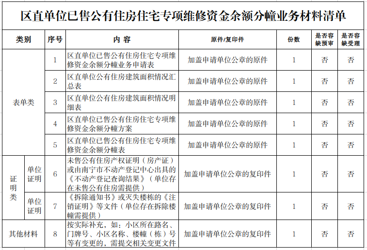 (三)在《区直单位公有住房建筑面积情况明细表》及《区直单位住宅专项维修资金余额分幢表》内不需要提供已灭失楼幢信息。