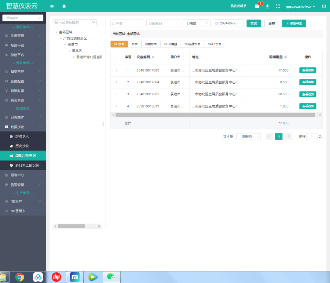 用水实时监控系统实现了水表二级以上计量,使节水分解细化,对节水项目的用量长期监测和节水效益评估,实现了生活用水、消防、中央空调冷水塔补水等部位用水单独计量,分级计量率达 100%。据统计数据显示,港北区行政中心用水总量从2022年1-10月的42247.5m³下降至2023年1-10月的25157m³,降幅达40.45%。