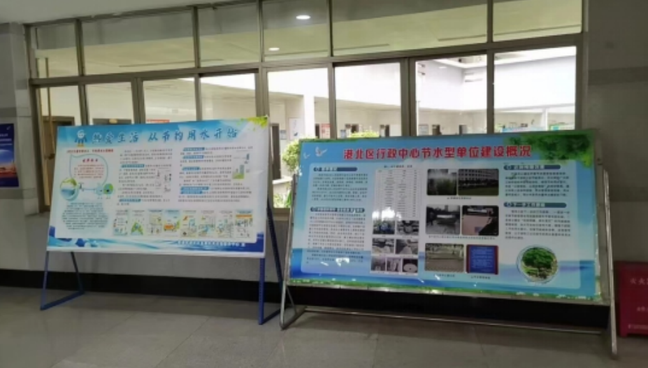 1.在行政中心内用水场所和器具上张贴或摆放节水标识,在会议室和办公室内张贴节水墙贴,提醒员工和来访人员,节约用水。